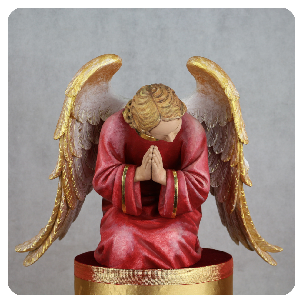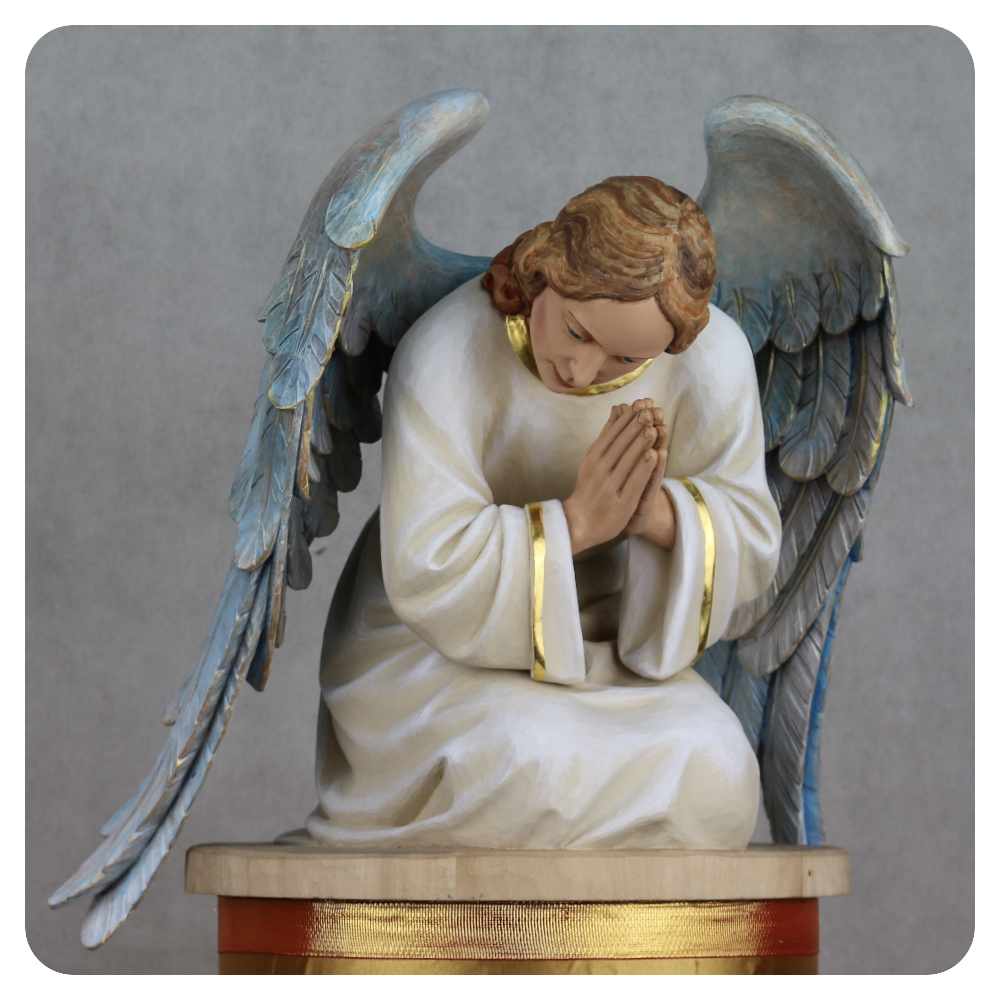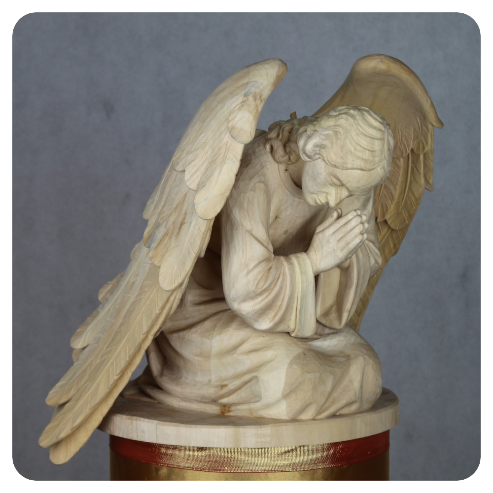 Rzeźby aniołów powstają głównie z drewna lipowego, które pozwala precyzyjnie oddać detale oraz łagodny, harmonijny kształt postaci. W zależności od przeznaczenia wykonujemy figury o wysokości od 50 do 240 cm, dbając o proporcje, układ postaci oraz czytelność wyrazu.