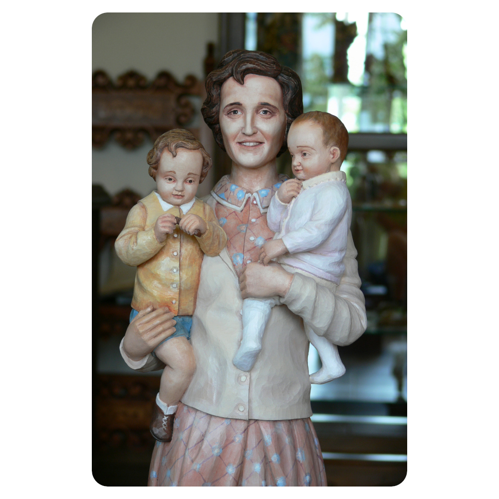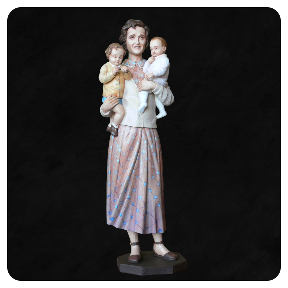 Rzeźba przedstawiająca świętą Giannę Berettę Mollę ukazuje postać wyjątkowej kobiety — żony, matki, lekarki i świętej Kościoła katolickiego. Gianna, włoska pediatra urodzona w Magencie, oddała swoje życie w wyjątkowym akcie miłości, wybierając ratowanie życia nienarodzonego dziecka nawet kosztem własnego. Jej życie stanowi przykład głębokiej ufności w Bożą Opatrzność, oddania rodzinie i służeniu drugiemu człowiekowi – wartości, które ta piękna figura przenosi także do Twojej przestrzeni modlitwy i refleksji.