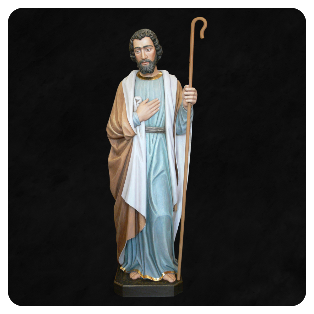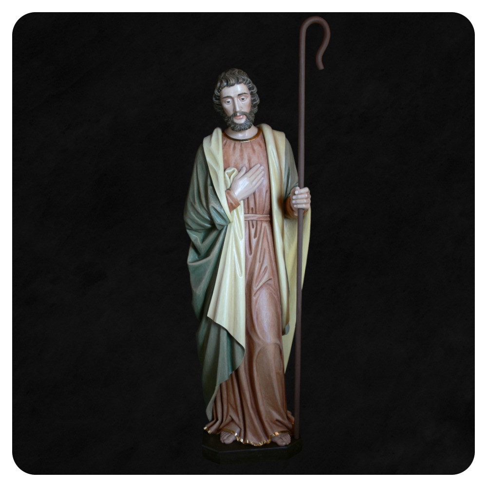 Rzeźba przedstawiająca świętego Józefa ukazuje postać opiekuna Świętej Rodziny — patrona ojców, rodzin oraz ludzi pracy. W tradycji chrześcijańskiej jest on symbolem pokory, odpowiedzialności i cichej, głębokiej wiary, opartej na zaufaniu wobec Boga.