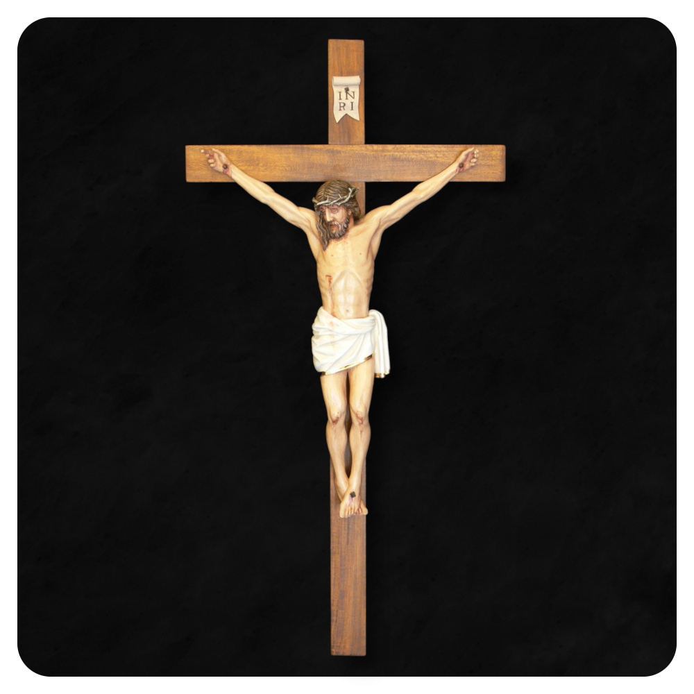 Każdy krucyfiks, który powstaje w naszej pracowni to ręcznie wykonana, unikatowa rzeźba. Figura Chrystusa tworzona jest z drewna lipowego bądź dębowego, z dbałością o proporcje i detale. Krzyże wykonujemy z różnych gatunków drewna, dobierając materiał i rozmiar tak, aby całość tworzyła spójną i harmonijną kompozycję.