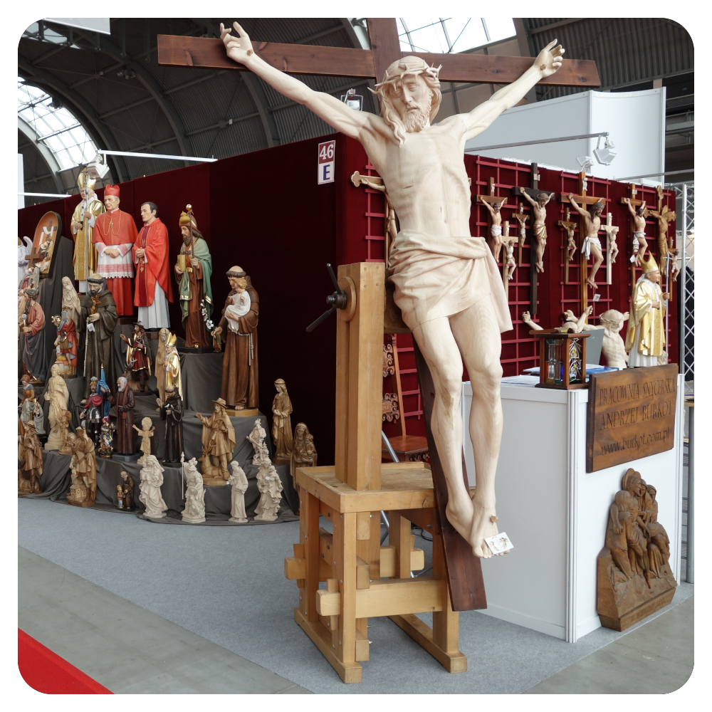 Postać Chrystusa wykonujemy w szerokim zakresie wielkości – od zaledwie 30 aż do 240 cm. Do tego dobieramy odpowiedni krzyż. Mniejsze krucyfiksy, z figurą do wysokości 50 cm, dostarczane są w komplecie z krzyżem. W przypadku realizacji wielkowymiarowych, krzyż wykonujemy indywidualnie na zamówienie. Większe figury posiadają odkręcane ręce, co ułatwia bezpieczny transport i montaż.