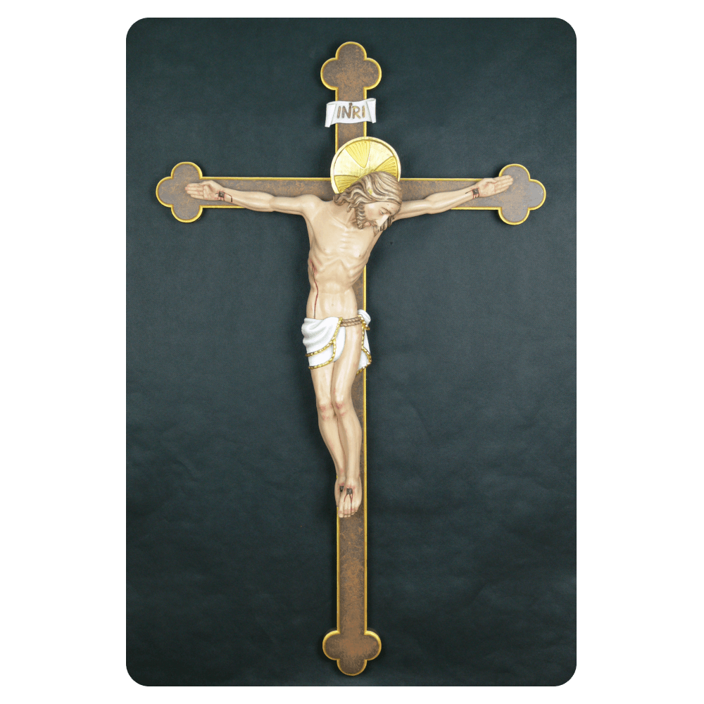 Postać Chrystusa wykonujemy w szerokim zakresie wielkości – od zaledwie 30 aż do 240 cm. Do tego dobieramy odpowiedni krzyż. Mniejsze krucyfiksy, z figurą do wysokości 50 cm, dostarczane są w komplecie z krzyżem. W przypadku realizacji wielkowymiarowych, krzyż wykonujemy indywidualnie na zamówienie. Większe figury posiadają odkręcane ręce, co ułatwia bezpieczny transport i montaż.