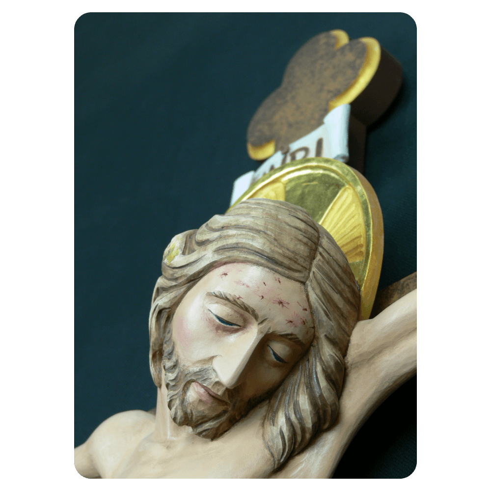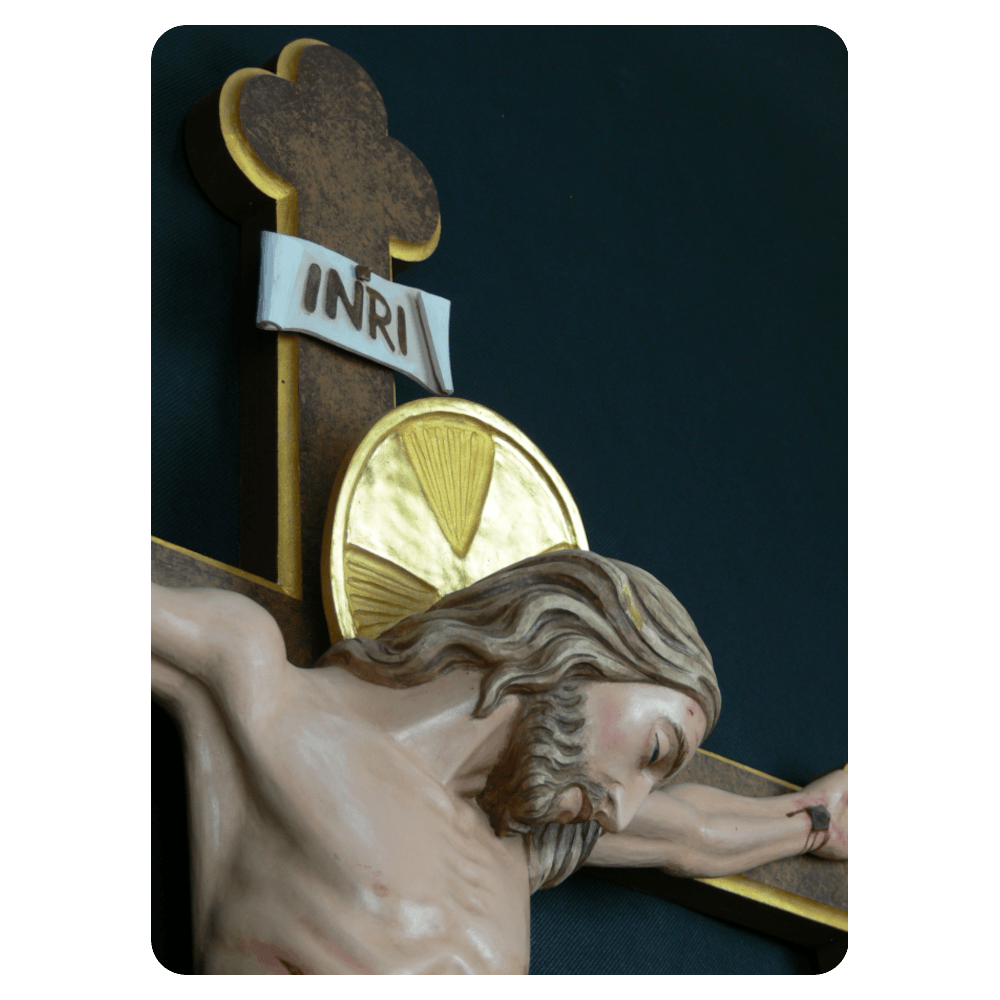 Każdy krucyfiks, który powstaje w naszej pracowni to ręcznie wykonana, unikatowa rzeźba. Figura Chrystusa tworzona jest z drewna lipowego bądź dębowego, z dbałością o proporcje i detale. Krzyże wykonujemy z różnych gatunków drewna, dobierając materiał i rozmiar tak, aby całość tworzyła spójną i harmonijną kompozycję.