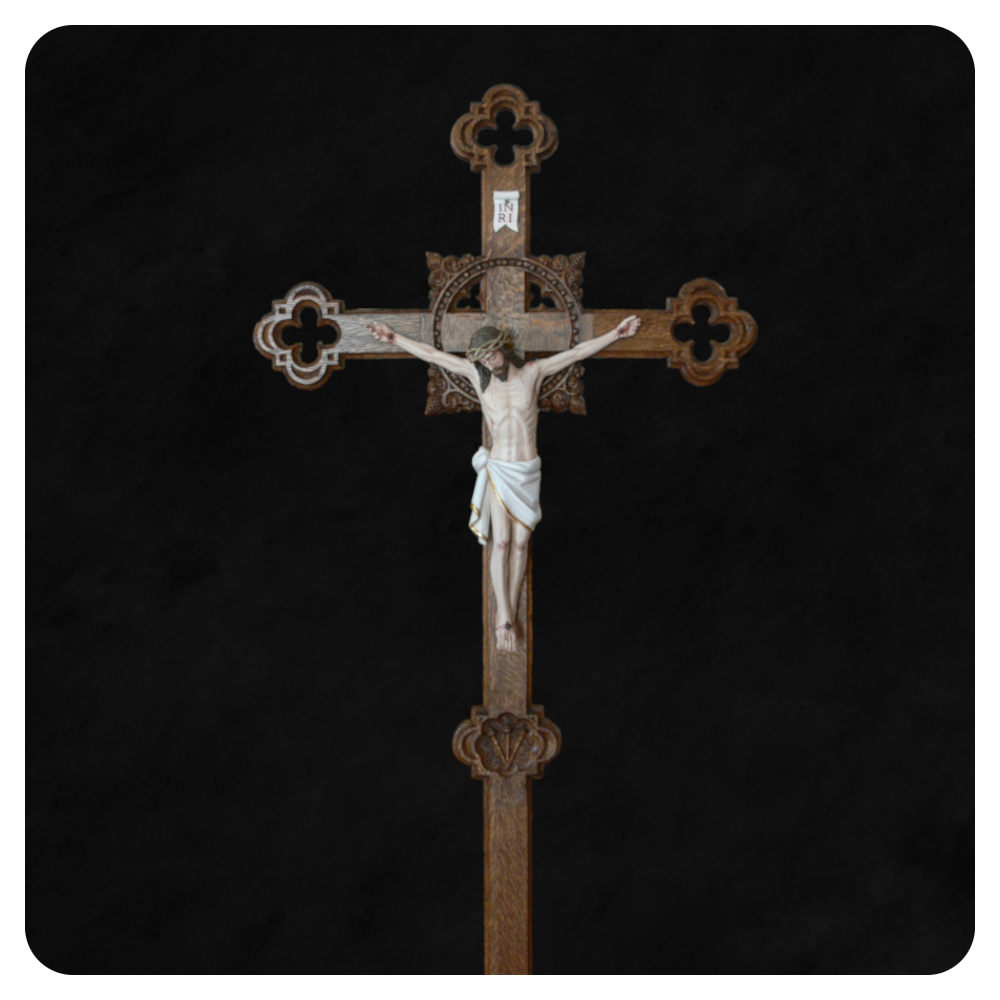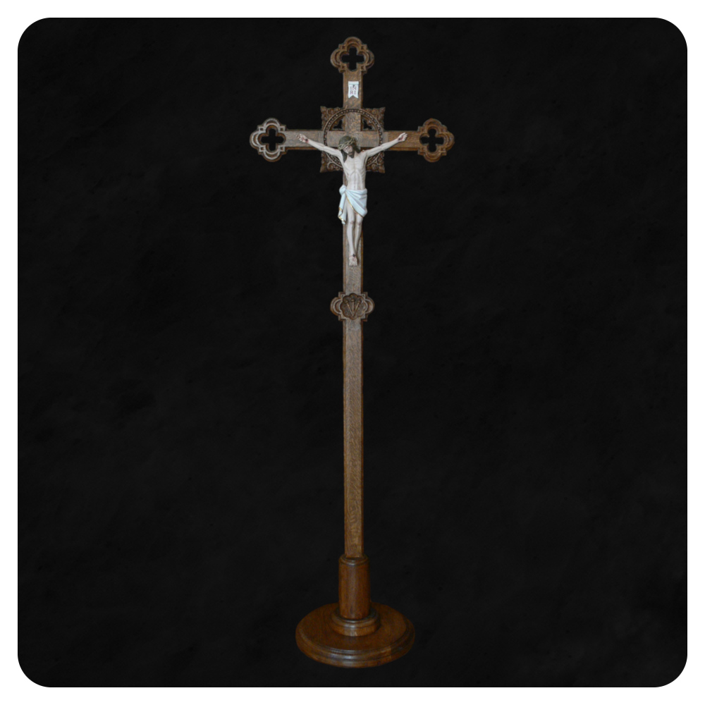 Krzyż procesyjny 1 to ręcznie wykonany krzyż liturgiczny w stylu barokowym, przeznaczony do użytku podczas procesji oraz uroczystości kościelnych. Model wyróżnia się dekoracyjną, dynamiczną formą inspirowaną tradycją sztuki barokowej, w której istotną rolę odgrywa ekspresja i podkreślenie sacrum.