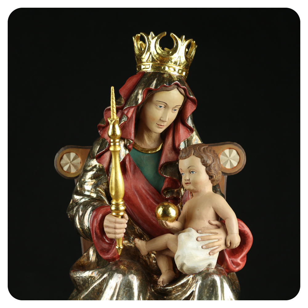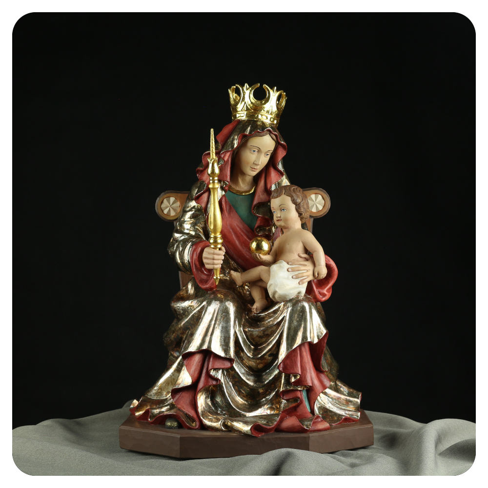 Rzeźby wykonujemy przede wszystkim z drewna lipowego, cenionego za doskonałe właściwości rzeźbiarskie. Oferujemy figury w szerokim zakresie wielkości – od około 50 do 240 cm, co pozwala na realizacje zarówno do wnętrz sakralnych, kaplic, kościołów, jak i do przestrzeni prywatnych.