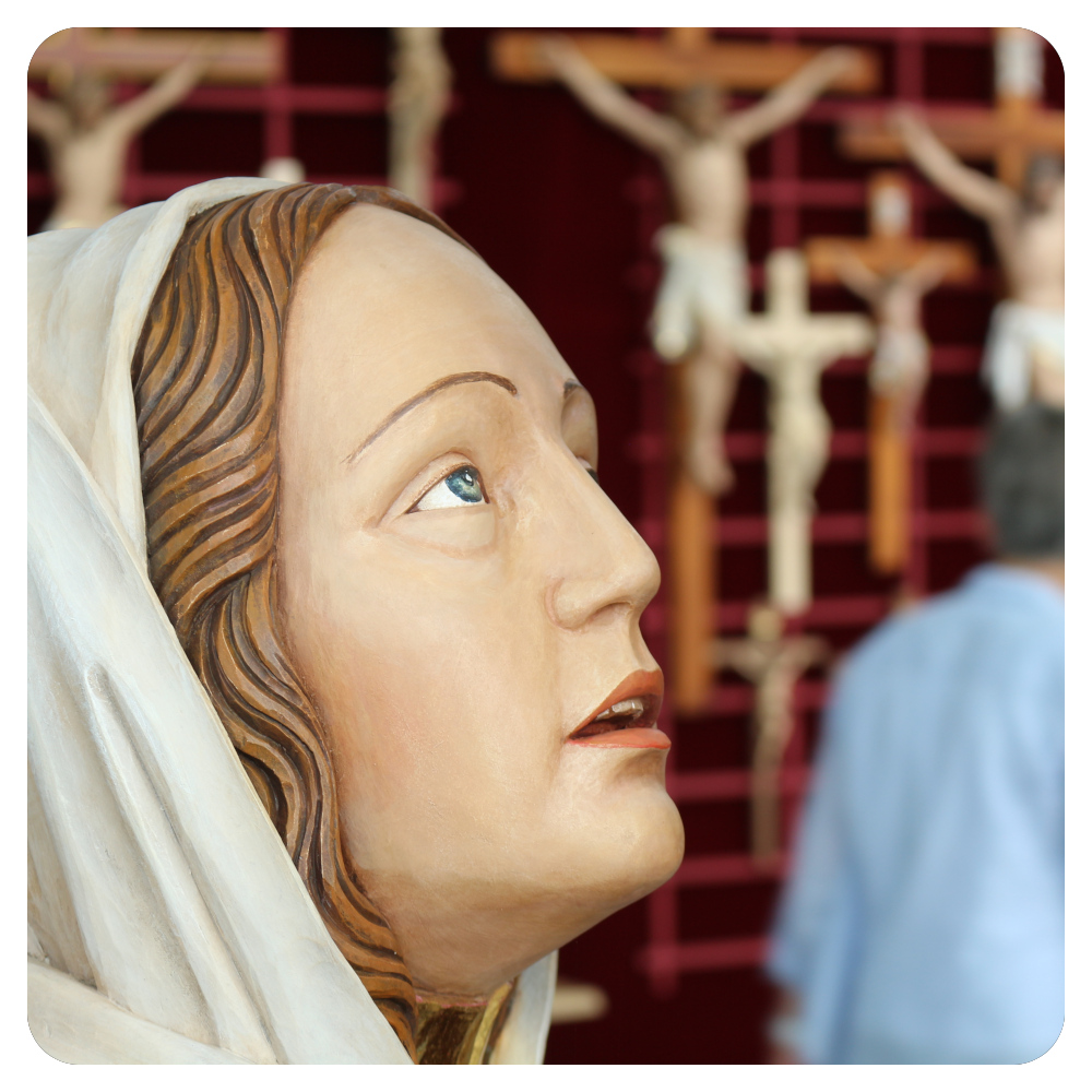 Wykonujemy również złocenia złotem płatkowym, nadające rzeźbom szlachetny, tradycyjny charakter i podkreślające detale szat, atrybutów oraz ornamentyki.