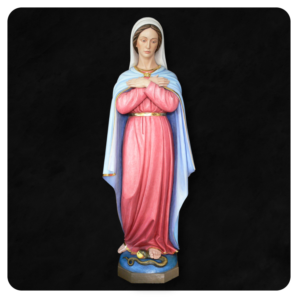 Rzeźby wykonujemy przede wszystkim z drewna lipowego, cenionego za doskonałe właściwości rzeźbiarskie. Oferujemy figury w szerokim zakresie wielkości – od około 50 do 240 cm, co pozwala na realizacje zarówno do wnętrz sakralnych, kaplic, kościołów, jak i do przestrzeni prywatnych.