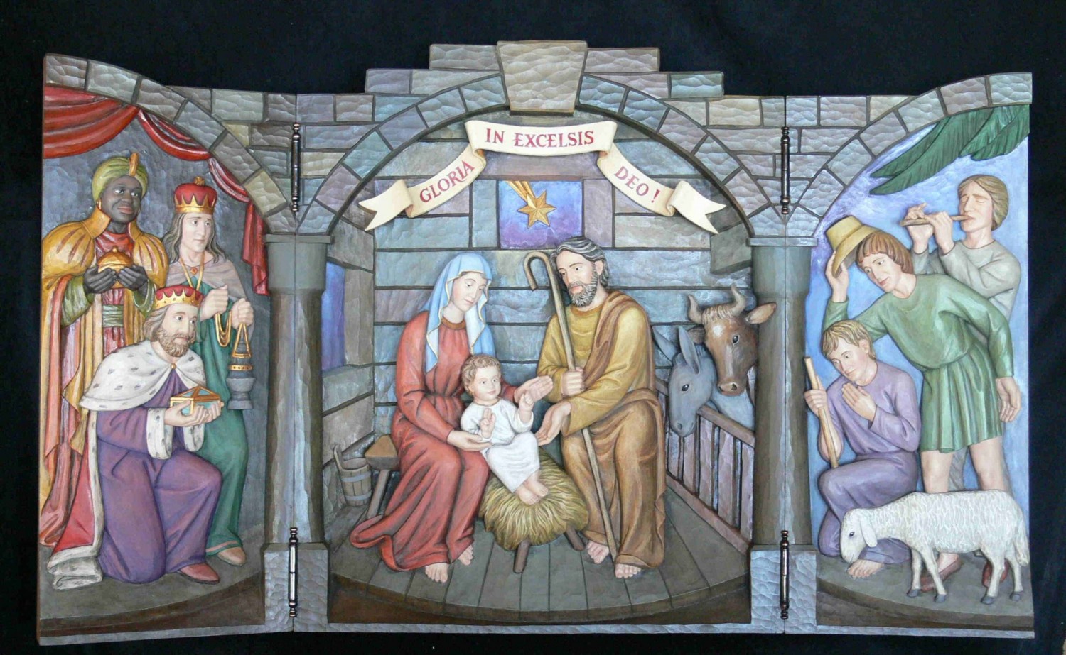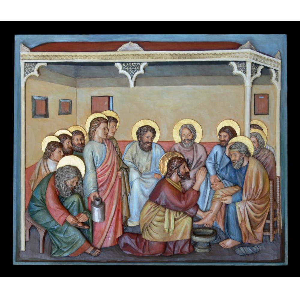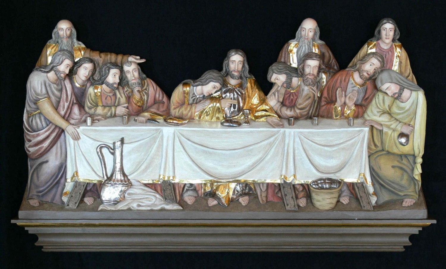 Drewniane płaskorzeźby stacji drogi krzyżowej. Kompozycje płaskorzeźb z drewna: pieta, tryptyk i ostatnia wieczerza